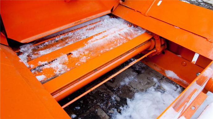 料倉配置標(biāo)準(zhǔn)頂篩防止雜物及大體積受潮、板結(jié)物料進(jìn)入,配合防雨布阻擋水流侵入,有效保護(hù)撒布機(jī)輸送料倉倒V結(jié)構(gòu),減輕傳動(dòng)系統(tǒng)負(fù)載,鋼制履帶可提供強(qiáng)勁、可靠、持續(xù)的融雪劑輸送,有效預(yù)防履帶運(yùn)輸鹽料過程中導(dǎo)致廂體后部產(chǎn)生的堆積卡堵現(xiàn)象,保證物料撒播順暢。