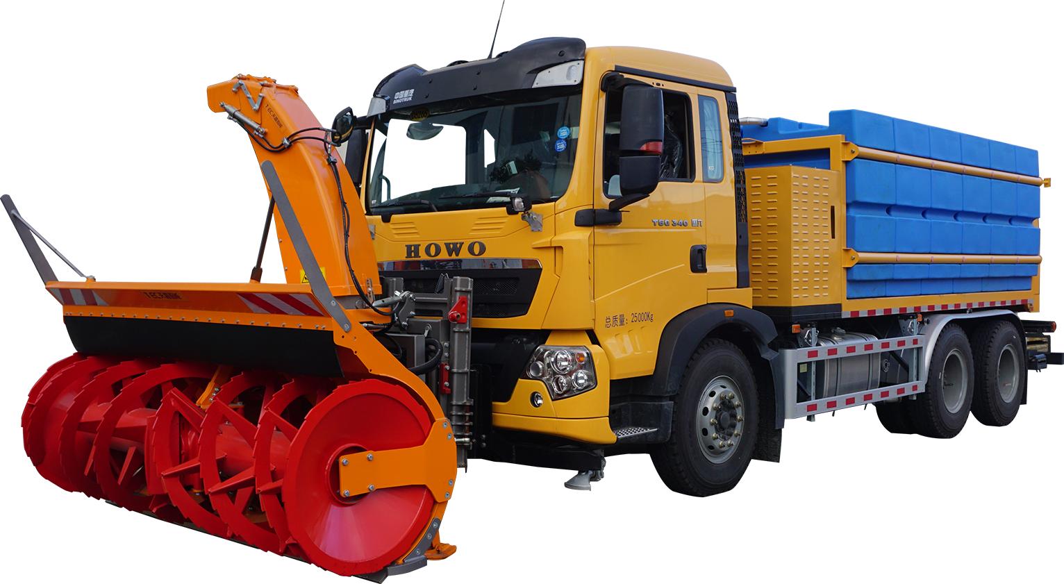 功能全:水車功能(前沖、側(cè)沖和水炮)、應(yīng)急消防、智能撒布液體融雪劑、鹽水站攪拌;